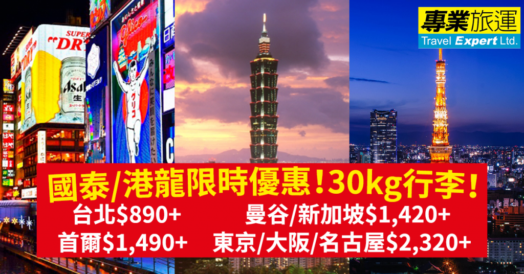國泰/港龍限時優惠!30kg行李!台北$890,曼谷/新加坡$1,420,首爾$1,490,東京/大阪/名古屋$2,320 – 專業旅運 (優惠至11月24日)