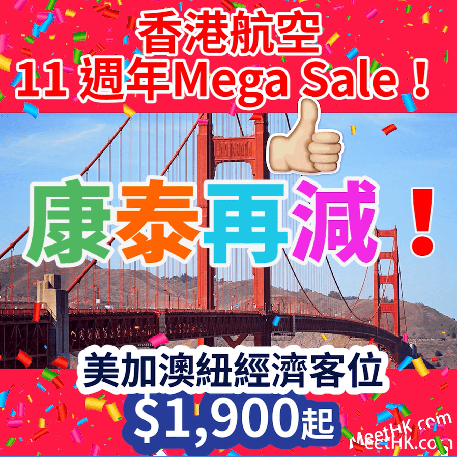 香港航空11週年Mega Sale大放送好平呀!飛美加澳紐真係超級抵!另外長短途Business class一樣有平!