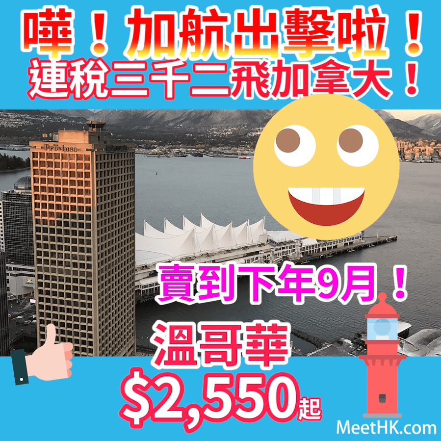 嘩!加航出擊啦!連稅3千2飛溫哥華!明年9月30日前出發!香港往返溫哥華只需$2,550起 – 加拿大航空 (優惠至12月11日)