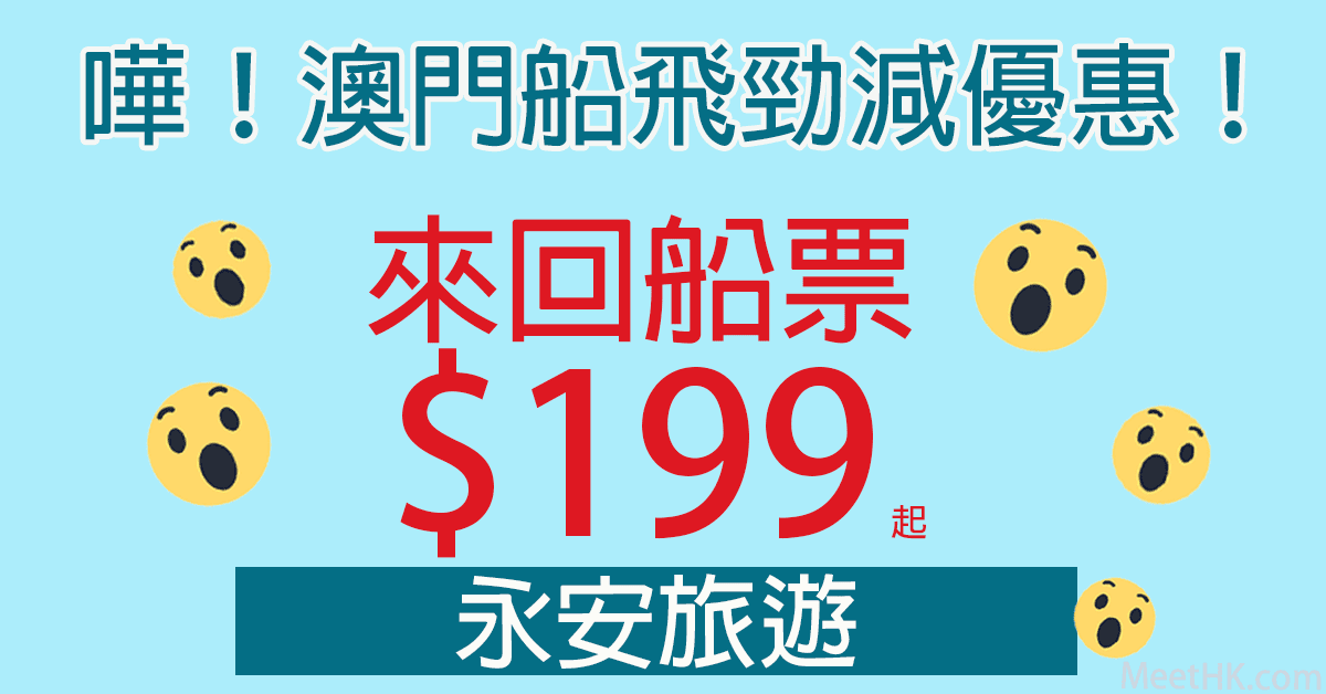 減左之後,平日出發來回澳門船票每人只需$199,平通街!優惠仲要不限名額添!