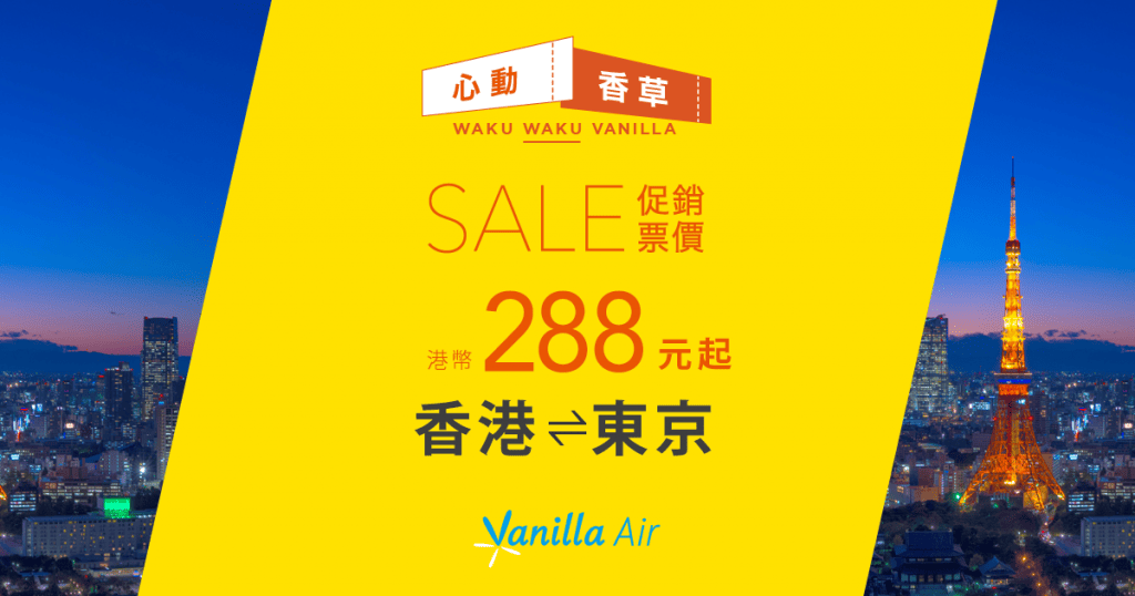 連稅$940飛東京!明年3月24日前出發!香港飛東京單程只需$288起 – 香草航空 Vanilla Air (優惠至12月9日)