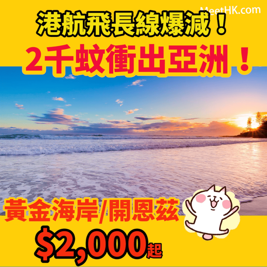 嘩嘩嘩!連稅2千八衝出亞洲!港航長線航點爆減!香港往返黃金海岸/開恩茲$2,000起、洛杉磯/三藩市$2,060起、奧克蘭$2,360起、溫哥華$2,610起 – 香港航空 (優惠至12月22日)