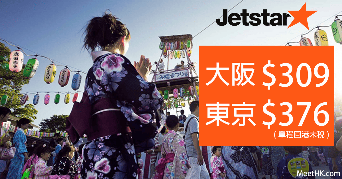 下午5點開賣!明年3月22日前出發!大阪飛香港單程只需$309、東京$376 – Jetstar Japan (優惠至12月18日)