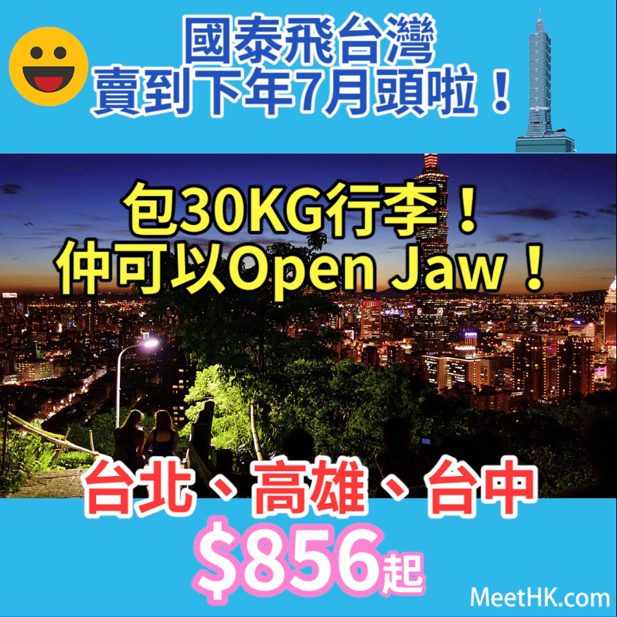 國泰賣到下年7月頭啦!30kg行李!國泰港龍飛台北、高雄、台中來回只需$856起 (可open jaw) – GoGoGo! (優惠至12月17日)