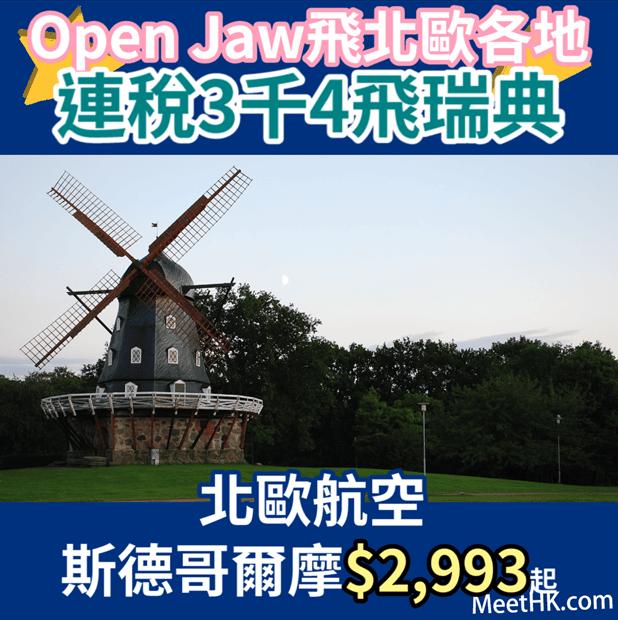 平到震!連稅3千4飛瑞典!明年4月30日前出發!香港直飛瑞典斯德哥爾摩來回只需$2,993起,可以open jaw玩多個城市先!– 北歐航空 (優惠至12月30日)