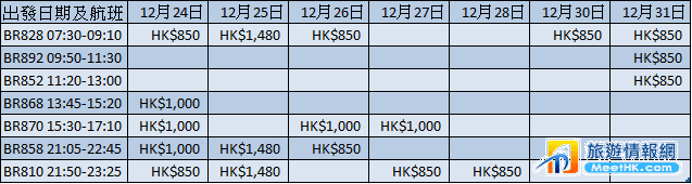 我地check過回程基本日日都有位,好似12月24日晚機放工出發,12月30日返,請2日假就可以係台灣玩成個星期,不過30日得返早機返