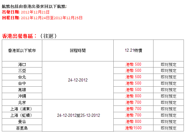 呢隻優惠全部都指定係12月21日出發,回程指定於12月24日或25日,大家可以係外地過聖誕節了