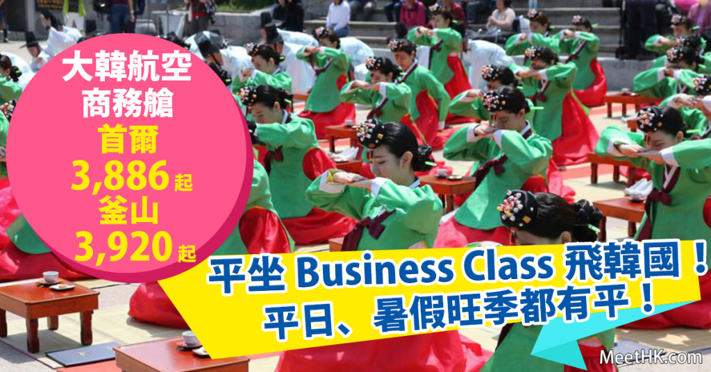正!暑假旺季都有!平坐大韓Business Class!連稅4千4!香港往返首爾商務艙$3,886起、釜山$3,920起 – 大韓航空 (優惠至4月22日)