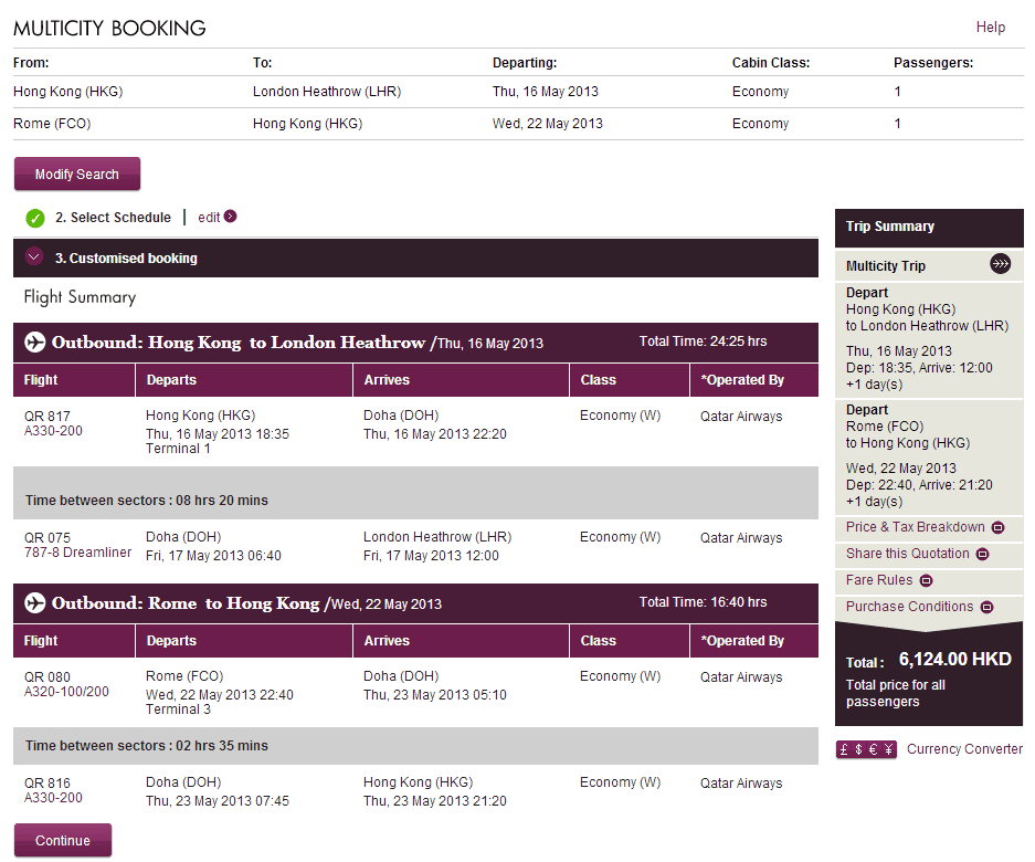 呢個優惠可以 open jaw,即係去同返唔一定要係同一個地方,例如倫敦入羅馬出,係卡塔爾航空網站揀 Multi-city 就可訂到