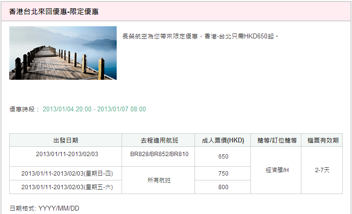 創新低價!一人成行!回程可坐Hello Kitty機!香港往返台北只需$650 – 長榮航空 (優惠至1月7日8am)