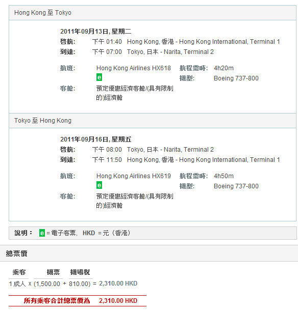 我們測試了一下,東京最平機票$1,500 + $810稅 = 機票連稅只需$2,310