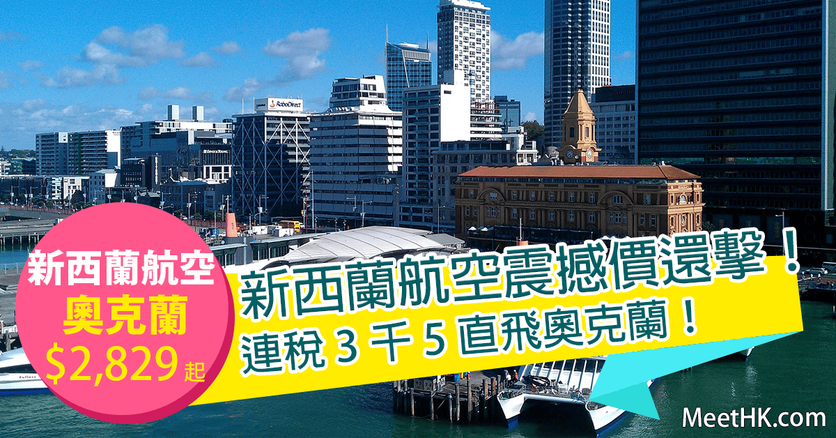 香港直航往返奧克蘭只需$2,829起,連稅$3,597起,真係超級抵