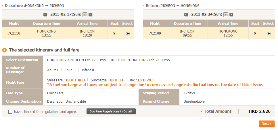 另外濟州航空仲有一些指定日子去同返既機票優惠,比上面既優惠平多$200,只需$1,600,連埋稅$2,426