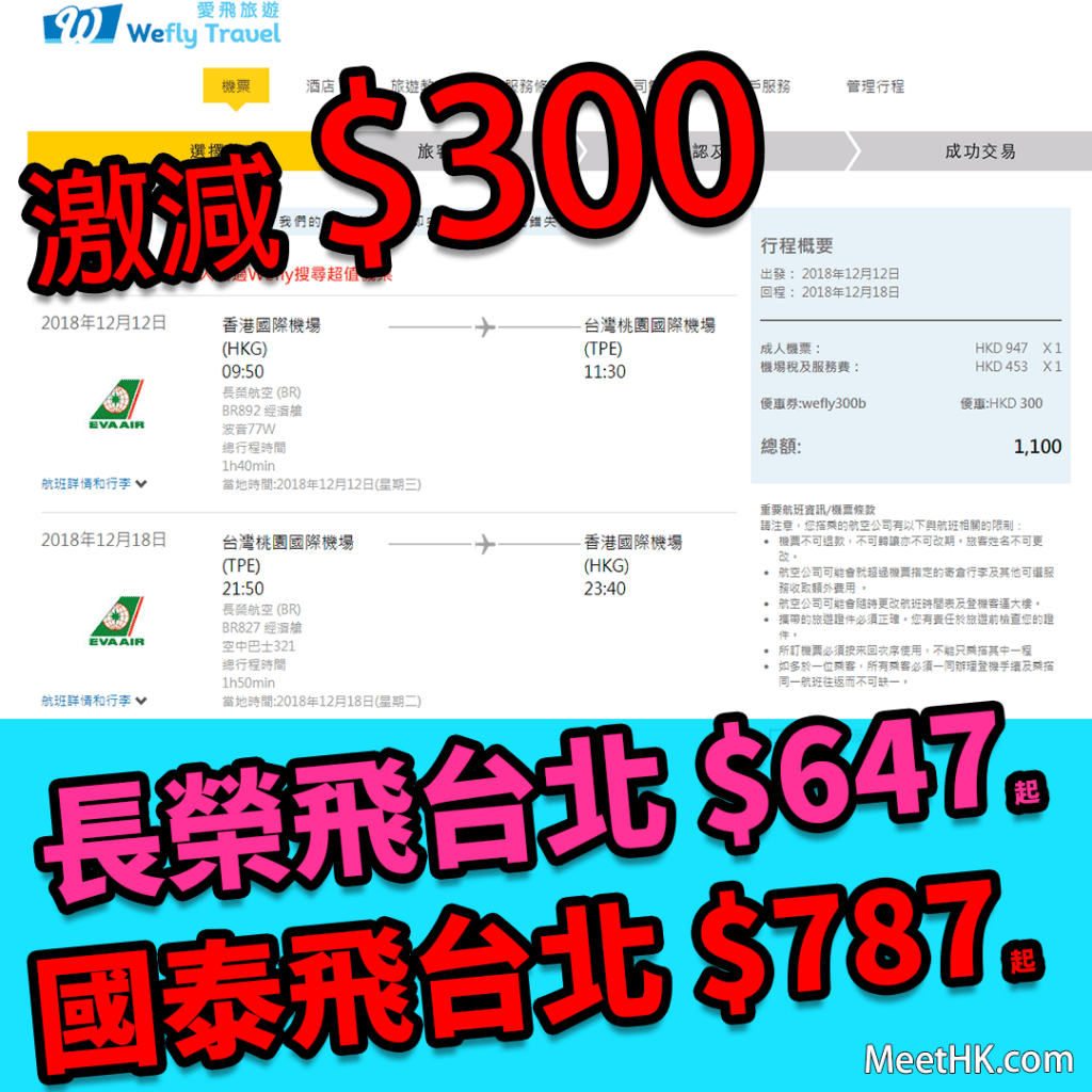 又再震撼減!即搶!真心抵!名額200個!全線機票每張激減$300!長榮飛台北$647起,國泰飛台北$787起、曼谷$1,084起、新加坡$1,135起,泰航飛曼谷$1,128起、首爾$1,020起,阿聯酋飛曼谷$925起,韓亞飛首爾$1,121起,大韓飛釜山$1,050起、首爾$1,320起,印航飛大阪$1,324起,新航飛澳洲$2,136起,維珍飛澳洲$2,995起 – Wefly.com.hk (優惠至8月8日)
