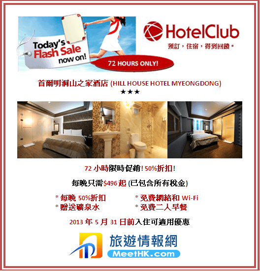 限時72小時!首爾酒店優惠!Hill House Hotel每晩只需$494起(已包稅) – HotelClub (優惠至2月14日6am)