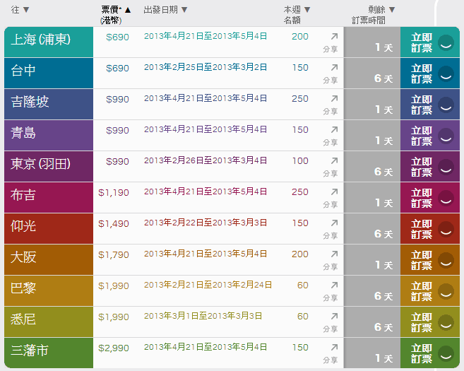 港龍航空: http://www.dragonair.com/ka/zh_HK/latest-offers/flights/fanfares/index.html