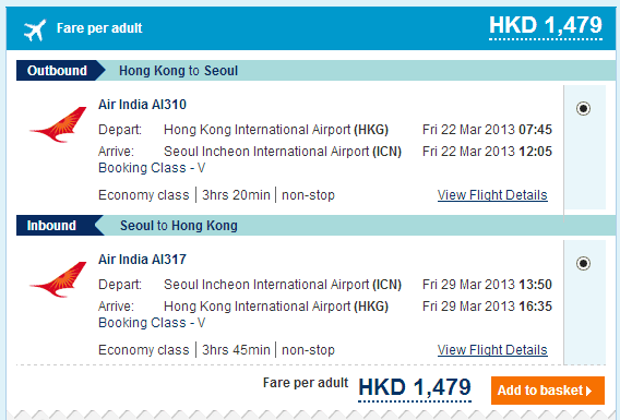 不過印度航空飛首爾得星期一、二、四、五有航班,大家要留意啦