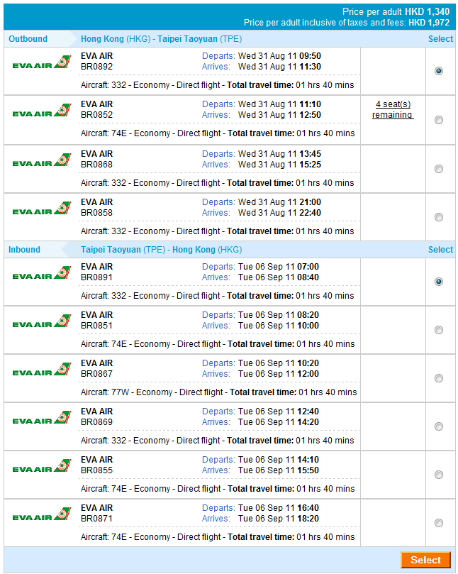 台北機票最平只需$1,340 + $632(稅) = $1,972