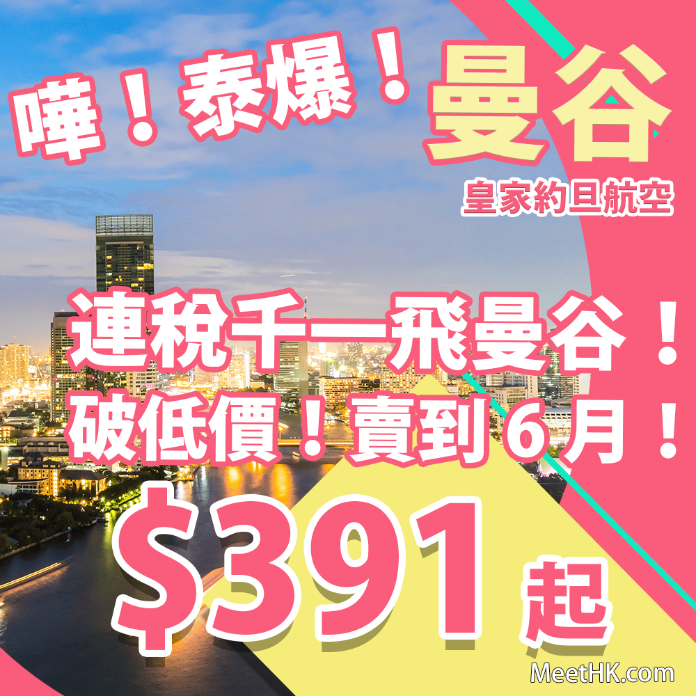 香港往返曼谷只需$391起,連稅$1,145起,呢個價真係值得入手!