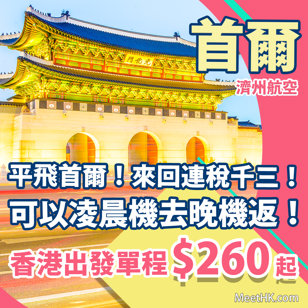 平飛首爾!來回連稅千三!可以凌晨機去晚機返!香港飛首爾單程只需$260起 – 濟州航空 (優惠至1月13日)