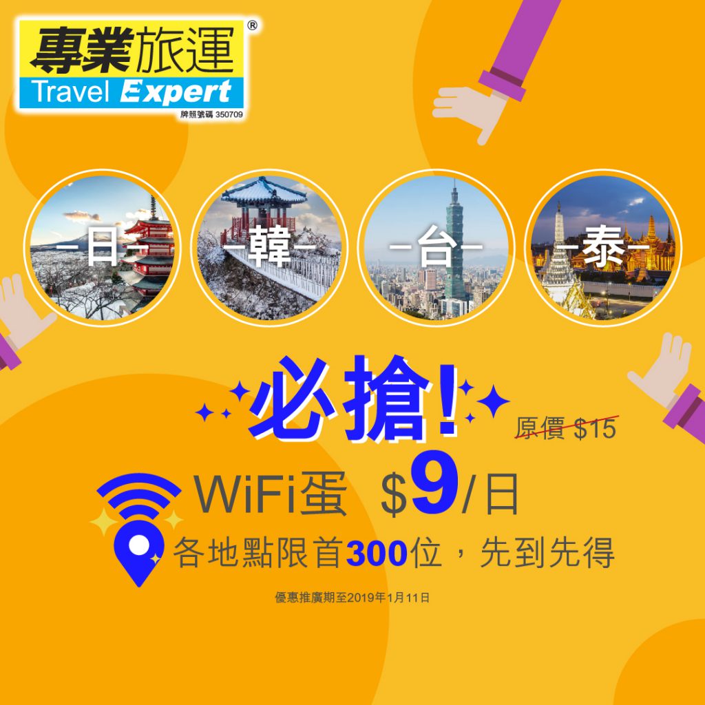 必搶!9蚊!9蚊!9蚊Wi-Fi蛋又嚟啦!日韓台泰4G無限數據Wi-Fi蛋$9/日! – 專業旅運 (優惠至1月11日)