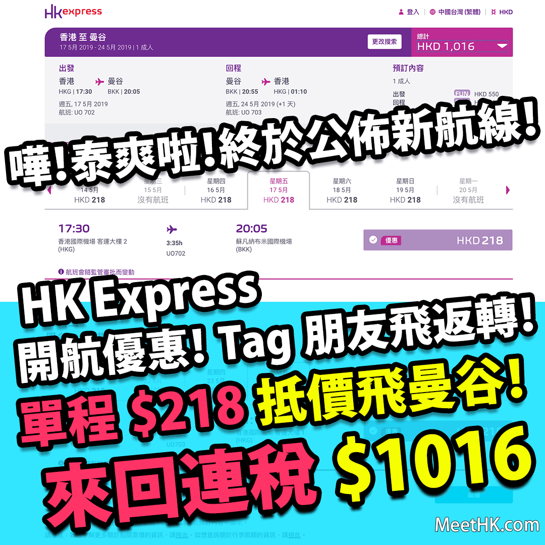 嘩!泰爽啦!終於公佈新航線!單程$218抵價飛曼谷!連稅一千!香港飛曼谷單程只需$218 – HK Express (優惠至4月1日)