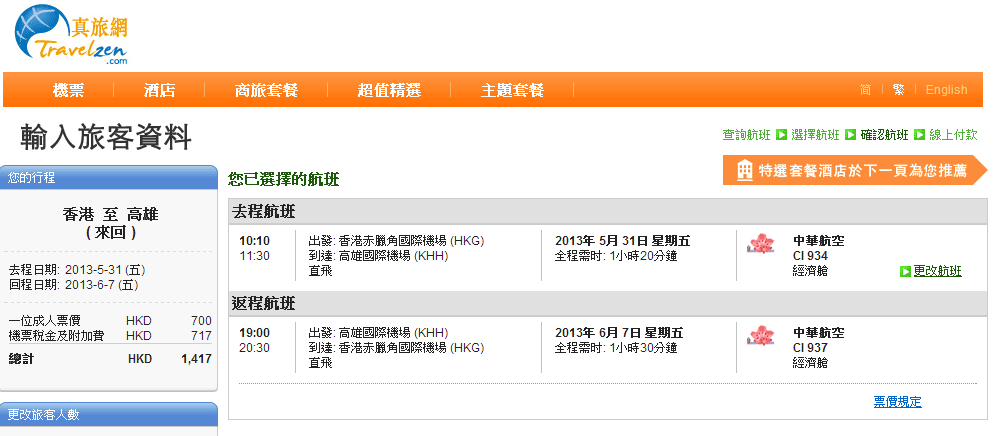 經我們測試,以高雄5月31日出發,6月7日返回為例