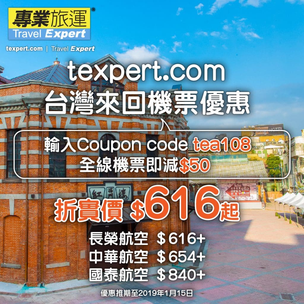 專業旅運網上商店texpert.com推出全線台灣機票優惠