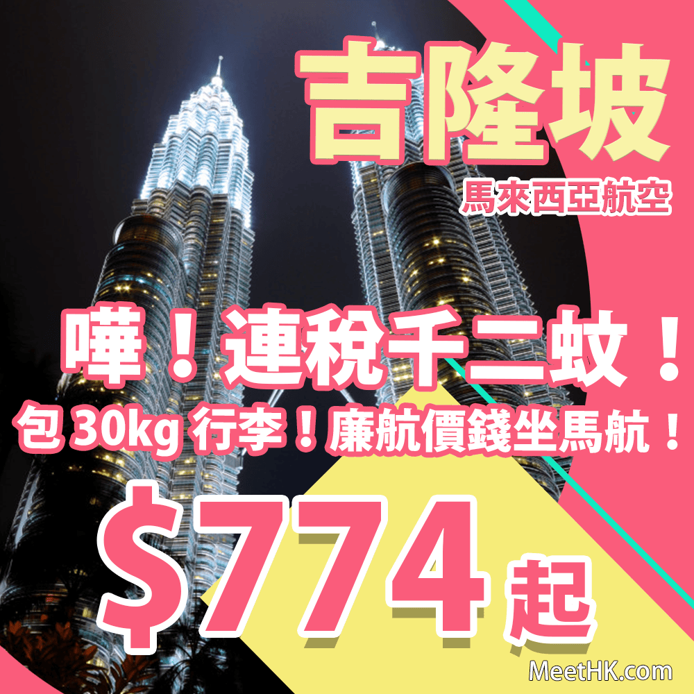 連稅千二蚊!包30kg行李!香港往返吉隆坡只需$774起 – 馬來西亞航空 (優惠至1月31日)