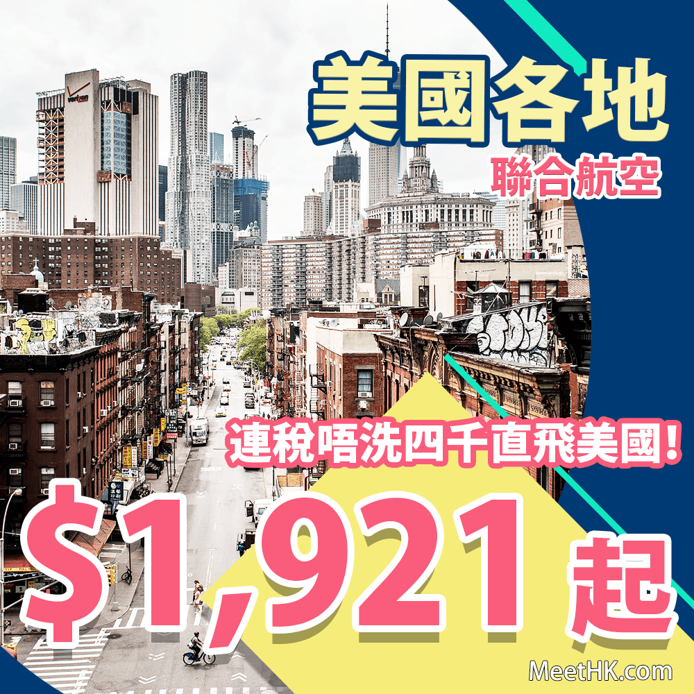 連稅三千九直飛紐約!5月31日前出發!包2件23kg行李!香港往返美國各地只需$1,921起 – 聯合航空 (優惠至1月14日)