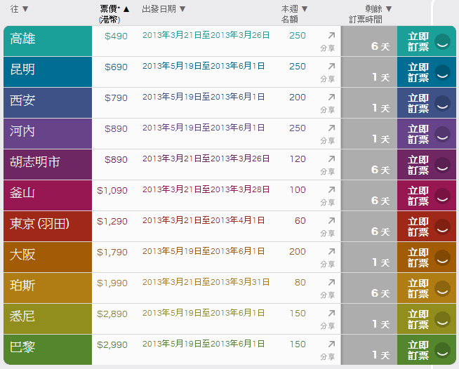 早上8時開搶!國泰 x 港龍 第二十一期 fanfares 優惠 涵蓋11個城市只需$490起 – 國泰航空 / 港龍航空