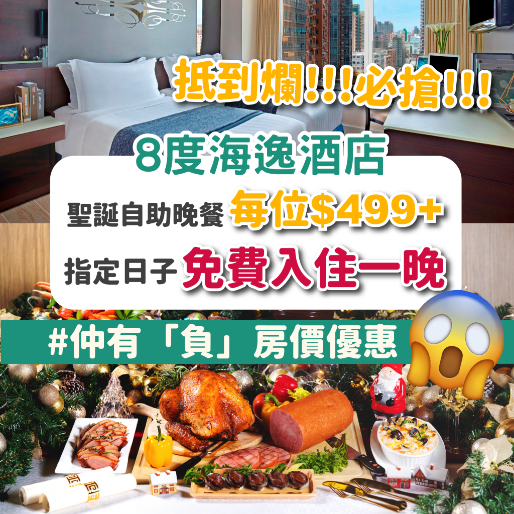 【8度海逸酒店Harbour Plaza 8 Degrees優惠】激抵呀!聖誕快閃優惠!限時5日!食自助餐送一晚高級客房住宿!低至每位$499起!仲有「負」房價住宿套票!