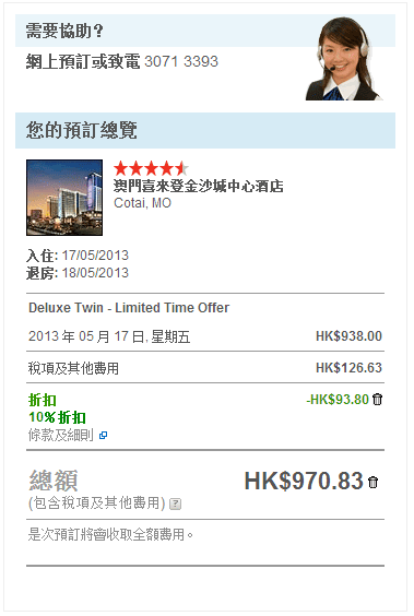 另外澳門喜來登金沙城中心酒店官網都可以訂到呢個優惠