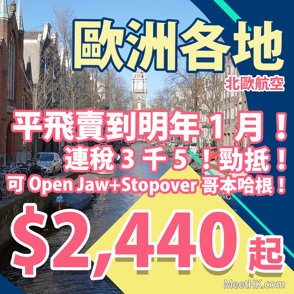 北歐航空全年歐洲優惠!賣到明年1月份喇!連稅3千5平飛歐洲!勁抵!Open Jaw+Stopover哥本哈根!香港往返歐洲各地只需$2,440起 – 北歐航空