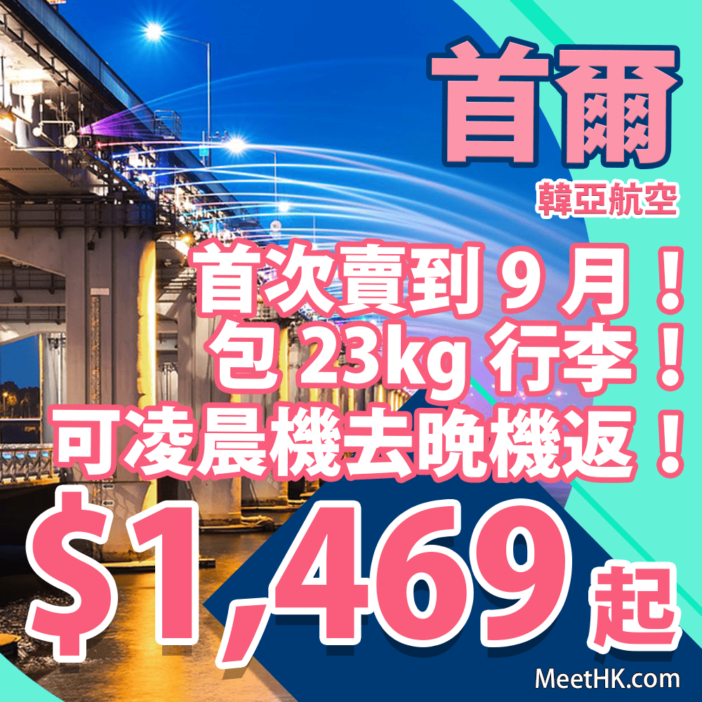 韓亞飛首爾!賣到9月出發!連稅二千一!可凌晨機去晩機返!香港往返首爾只需$1,469起 – 韓亞航空 (優惠至2月15日)