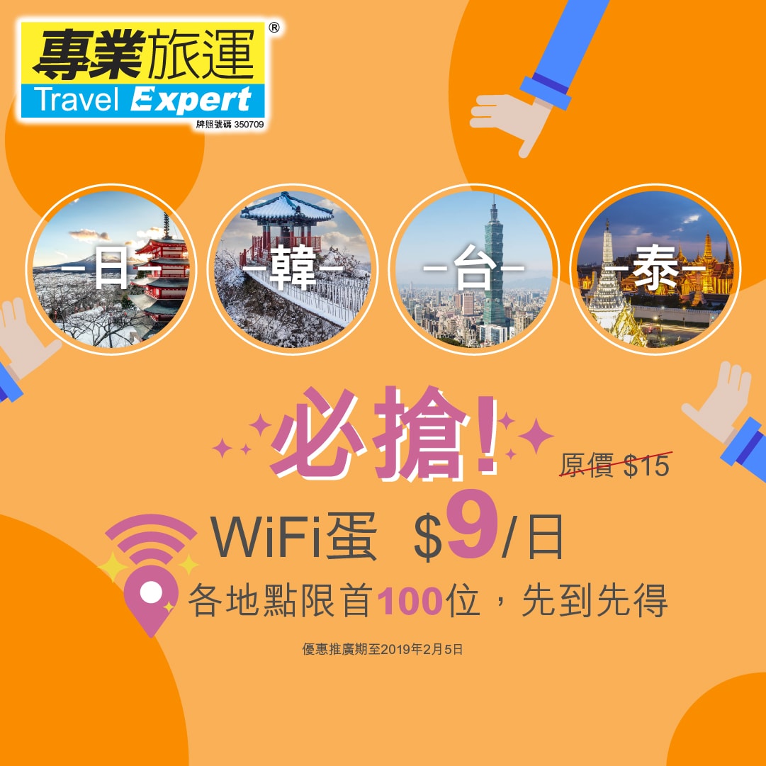 必搶!9蚊!9蚊!9蚊Wi-Fi蛋又嚟啦!日韓台泰4G無限數據Wi-Fi蛋$9/日! – 專業旅運 (優惠至2月5日)