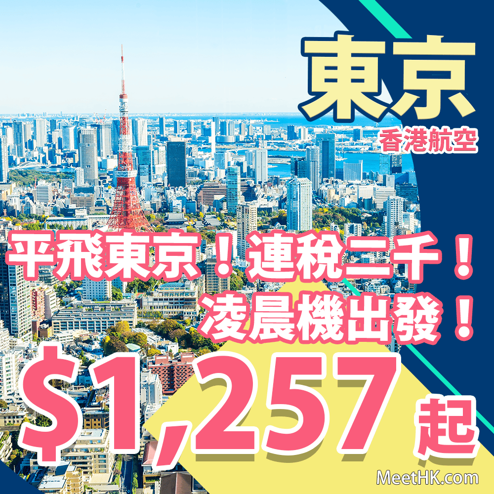 平飛東京!連稅二千!凌晨機出發!包20kg行李!香港往返東京只需$1,257起 – 香港航空 (優惠至2月17日)