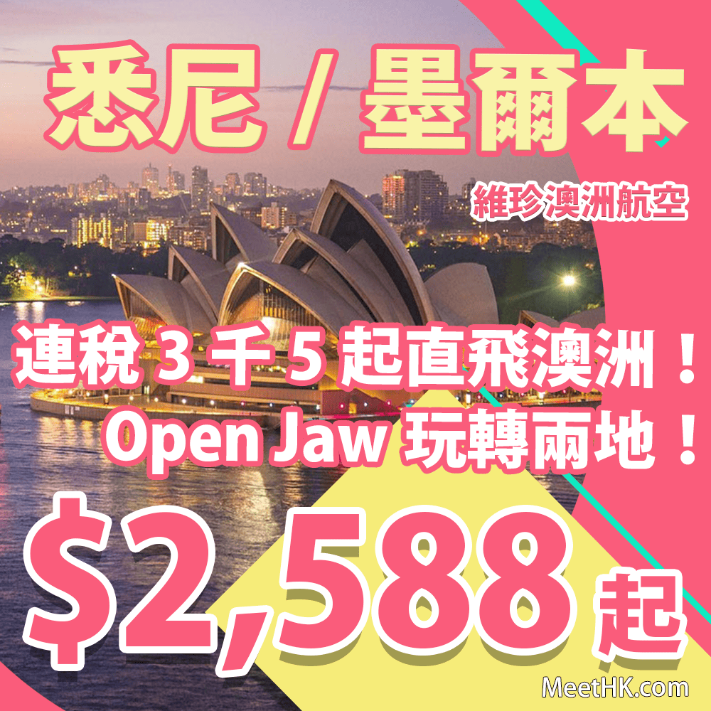香港直飛悉尼/墨爾本來回只需$2,588起,連稅墨爾本$3,522起、悉尼$3,625起