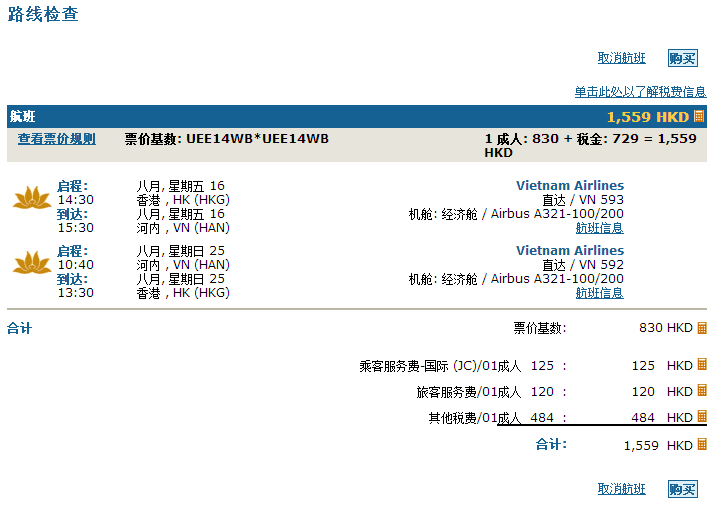越南航空亦都係今日推出左限時5日既優惠,香港往返河內、胡志明市只需$790,連埋稅河內都只係$1,559、胡志明市$1,590