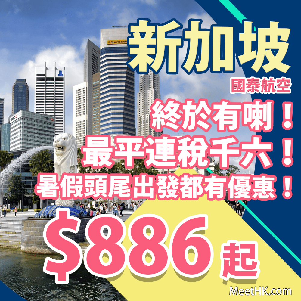 國泰飛獅城抵價優惠!最平連稅千六!香港往返新加坡只需$886起 – 國泰航空 (優惠至2月28日)