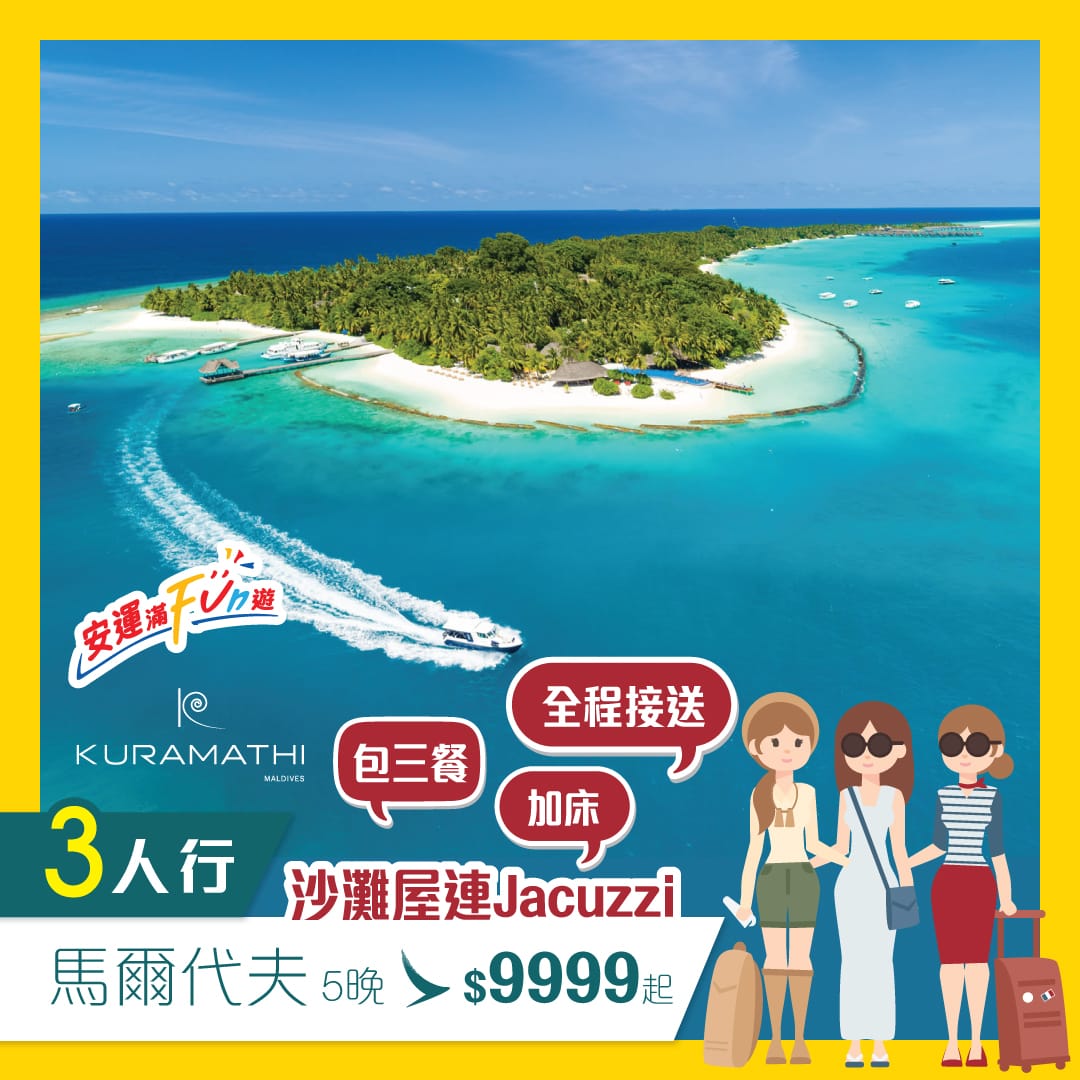 輕鬆歎世界!馬爾代夫三人套票優惠!住靚Resort!香港來回馬爾代夫機票連5晚酒店每人只需$9,999起 – 安運滿Fun遊 (優惠至3月31日)