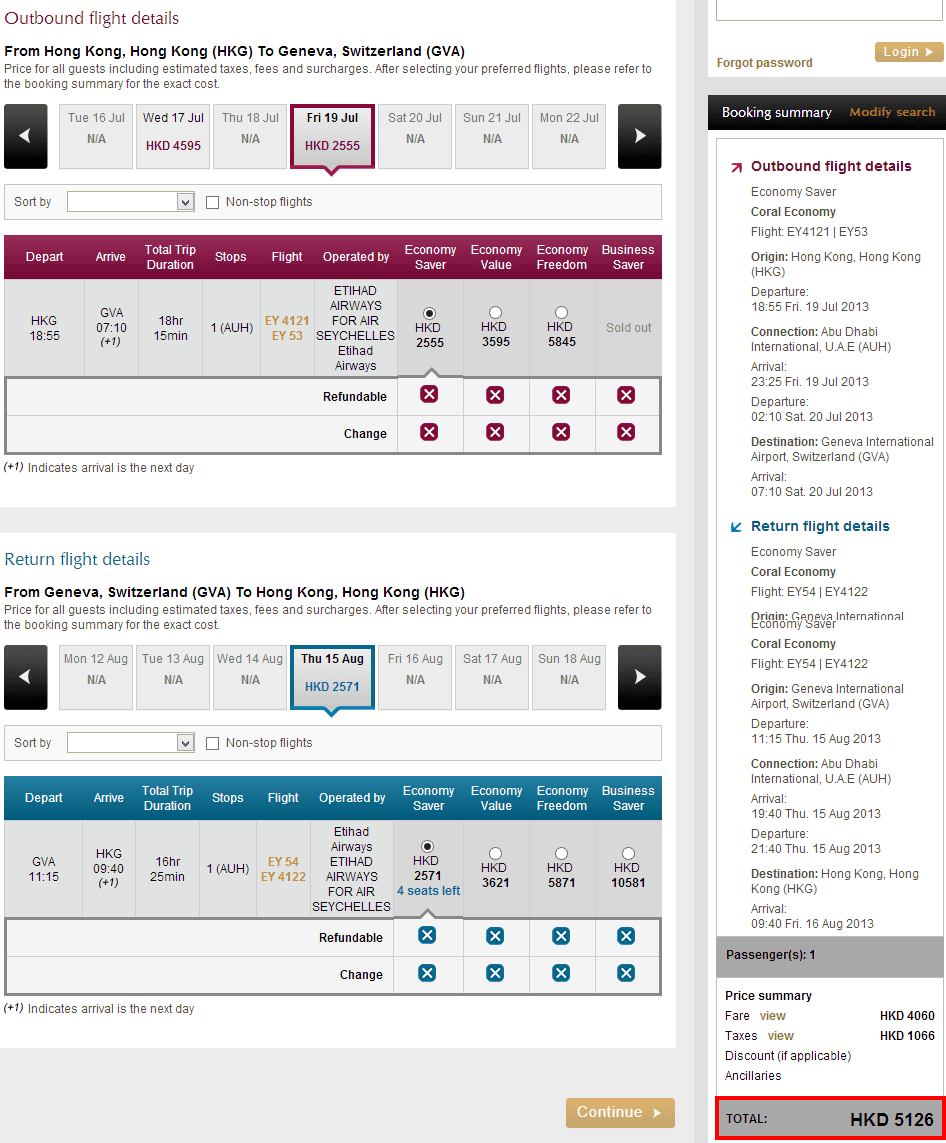 提提大家,由於阿提哈德航空官網只會顯示一些轉機時間較短既航班組合,其他轉機時間長一些既航班組合會被隱藏