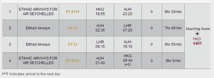 Flight 3 (20/6)倫敦飛阿布扎比,Flight 4 (20/6)阿布扎比飛香港,會搵到倫敦連稅$6,401