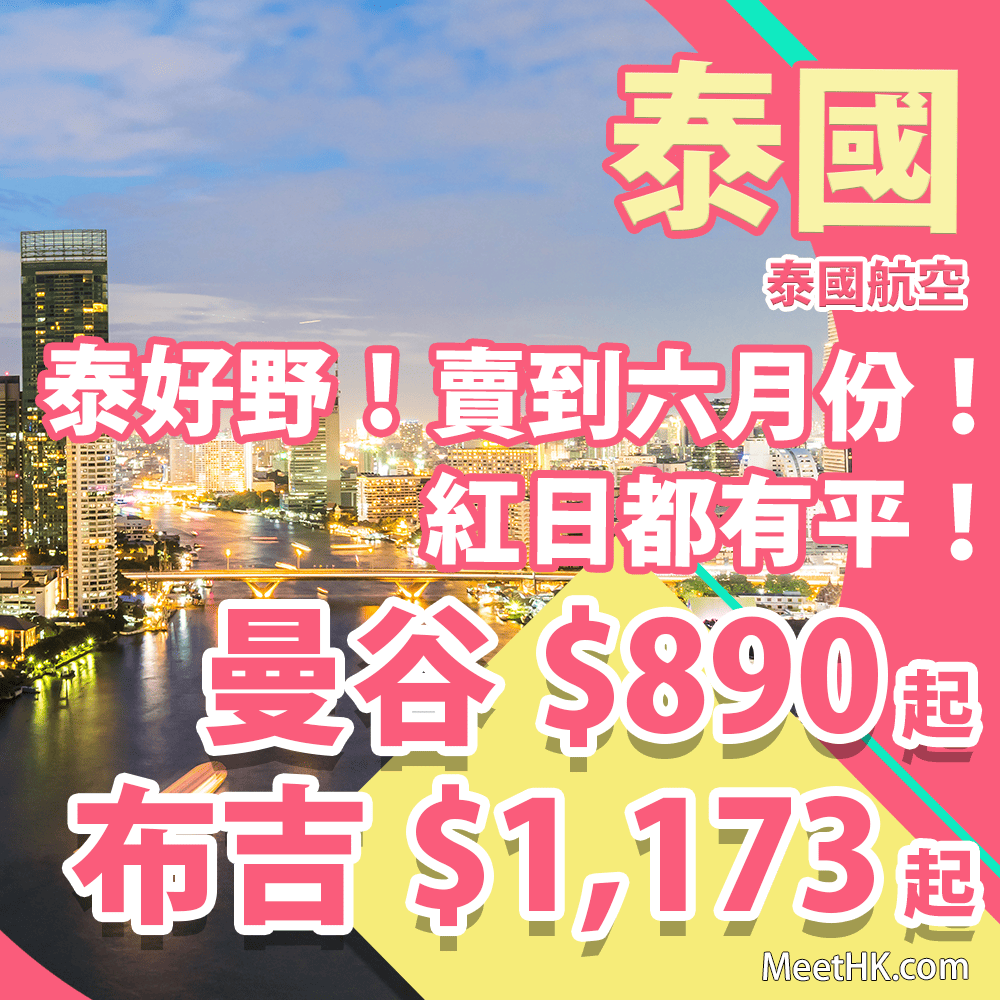 泰好野!泰航又出新優惠!連稅千六飛曼谷!紅日都有平!香港往返曼谷只需$890起,布吉$1,173起 – 泰國航空 (優惠至3月15日)