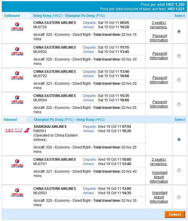 中國東方航空 香港至上海既機票有一個提前預訂既優惠