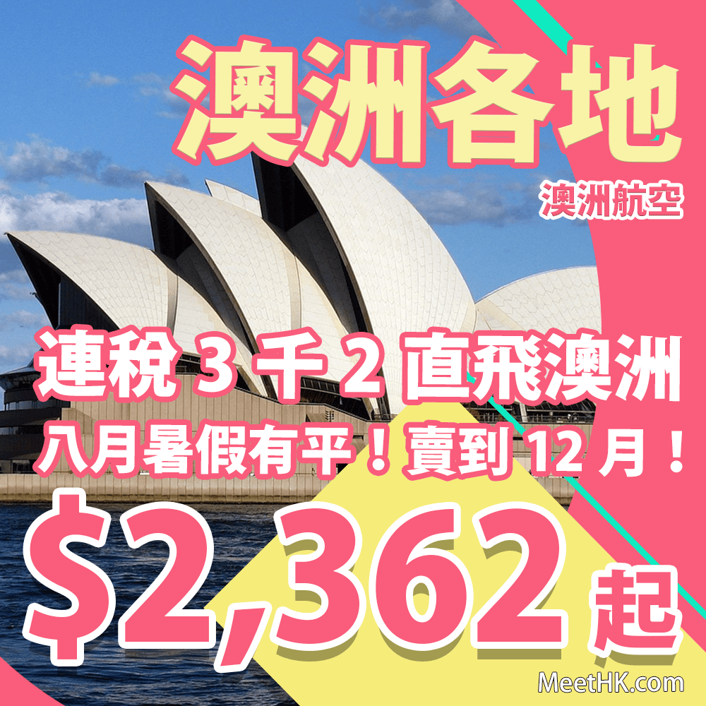 香港直飛澳洲各地來回只需$2,362起