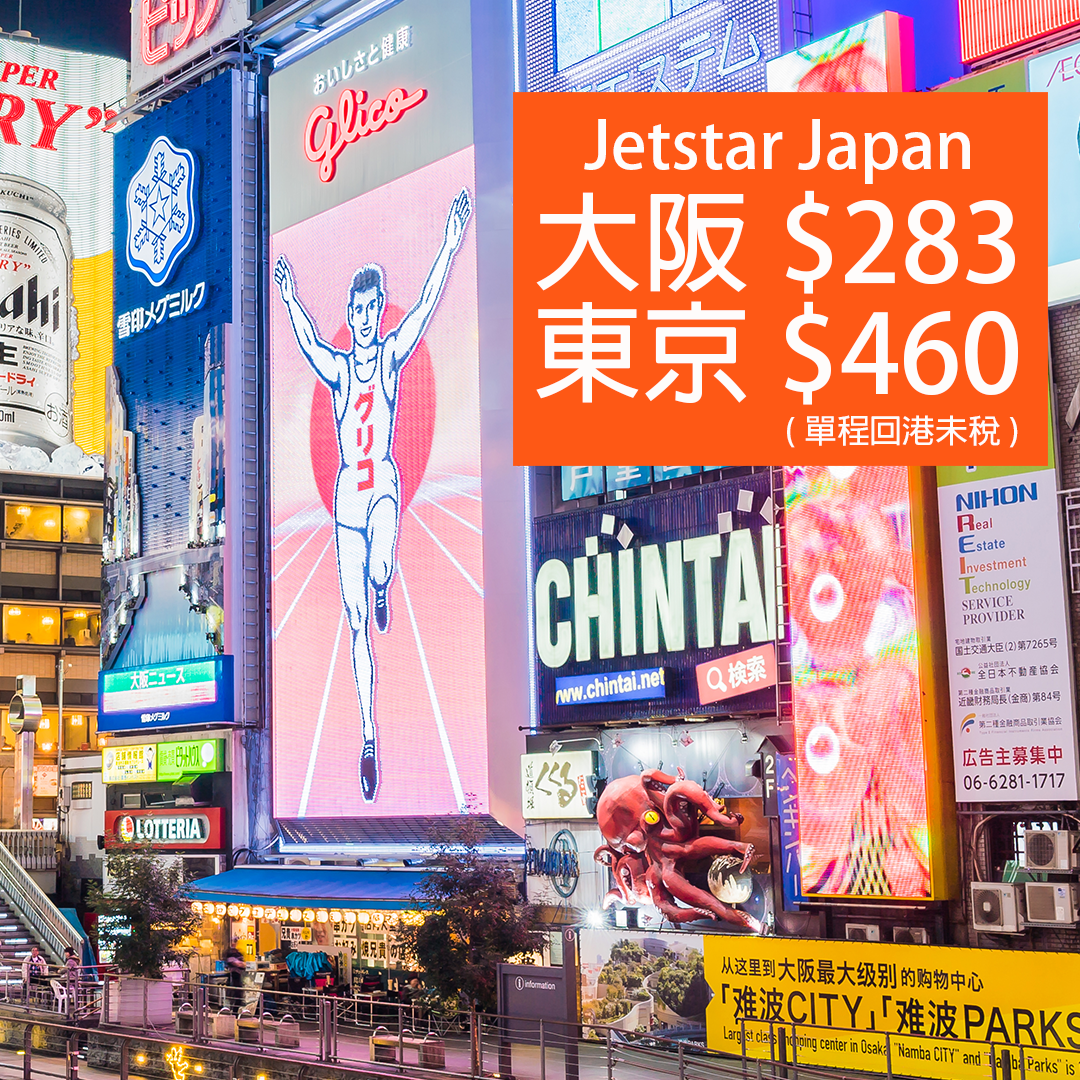 日本回港平飛優惠!未買可以睇睇!大阪飛香港單程只需$283起,東京$460起 – Jetstar Japan (優惠至2月25日5pm)
