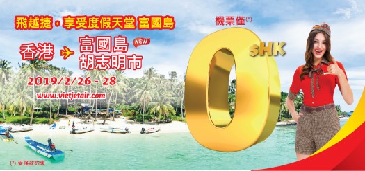 嘩嘩嘩!即搶!新航線富國島$0!限時3日!連稅四百幾咋!搶左先講!香港飛越南胡志明市/富國島只需$0起 – 越捷航空 Vietjet Air (優惠至2月28日)