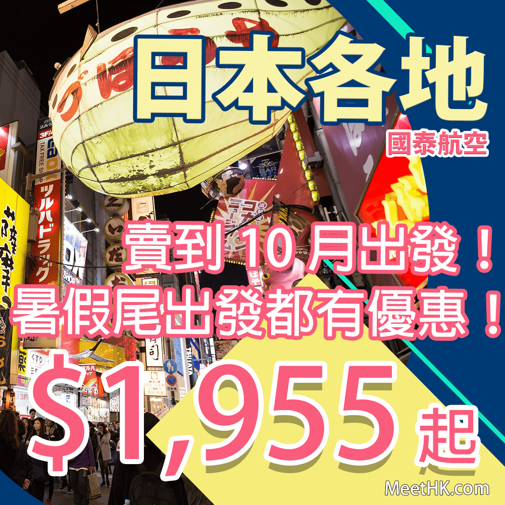 賣到10月出發啦!國泰日本線優惠!暑假尾出發都有優惠!香港往返沖繩只需$1,955起,大阪$2,336起、福岡$2,628起,名古屋$2,724起,東京$2,820起,札幌$3,954起 – 國泰航空 (優惠至5月31日)