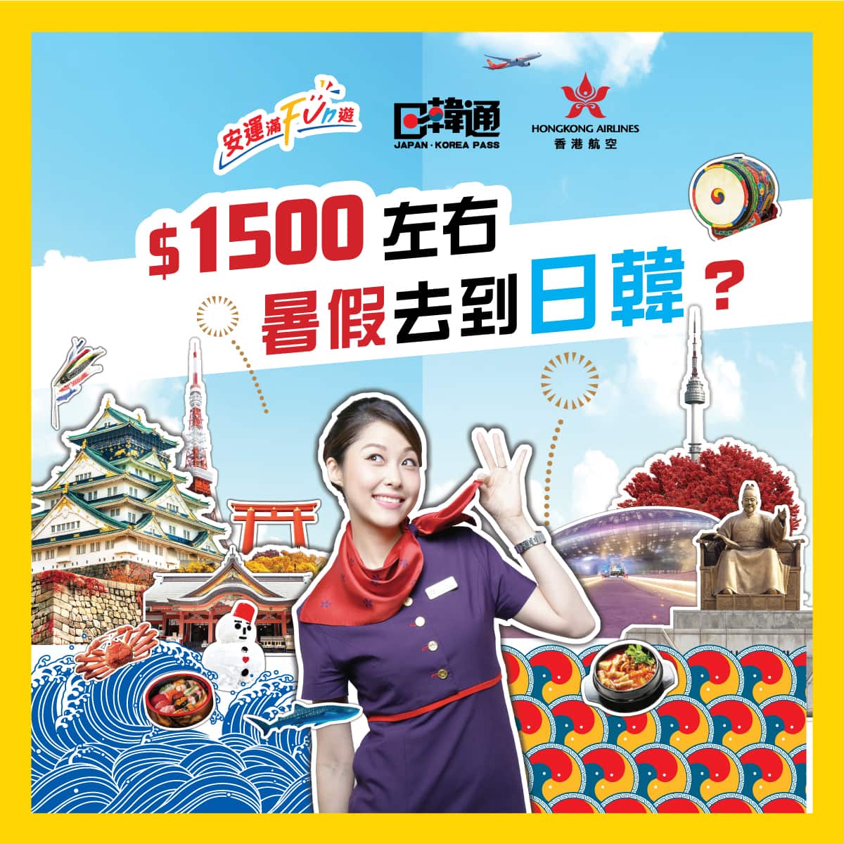 抵呀!港航Japan + Korea Pass日韓通年票!平均$1,545飛一轉,暑假都適用!可以share齊齊飛!4套來回日本/韓國機票只需$6,180起!– 安運滿FUN遊 (優惠至3月25日)